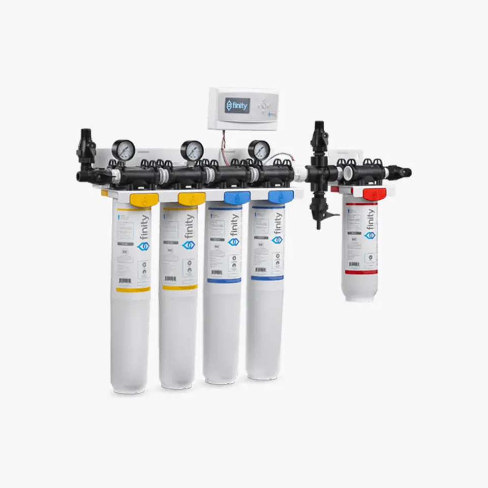 Finity® MODMS Serisi manifoldlar, arka odadaki çoklu besleme uygulamalarında kullanılmak üzere tasarlanmıştır - belirli suları buz makineleriniz, soğuk içecek istasyonlarınız ve kahve makineleri gibi birden fazla istasyon uygulamasına tek bir manifold montajından yönlendirir. Finity® MODMS Serisi manifoldlar, buz makinelerine özel su sağlayan Finity® IC Serisi kartuşları içerir. Ek olarak, Finity® MODMS Serisi manifoldlar soğuk içecek istasyonlarına Finity® CB, CB-CL veya CB-CLL Serisi kartuşlar aracılığıyla özel su sağlar. Herhangi bir MODMS manifold düzeneği, (isteğe bağlı olarak) Finity® SF-12 Skala İnhibisyon İndüktörü aracılığıyla filtrelenmiş su beslemeli kahve demleme istasyonlarını işlemek için donatılabilir.